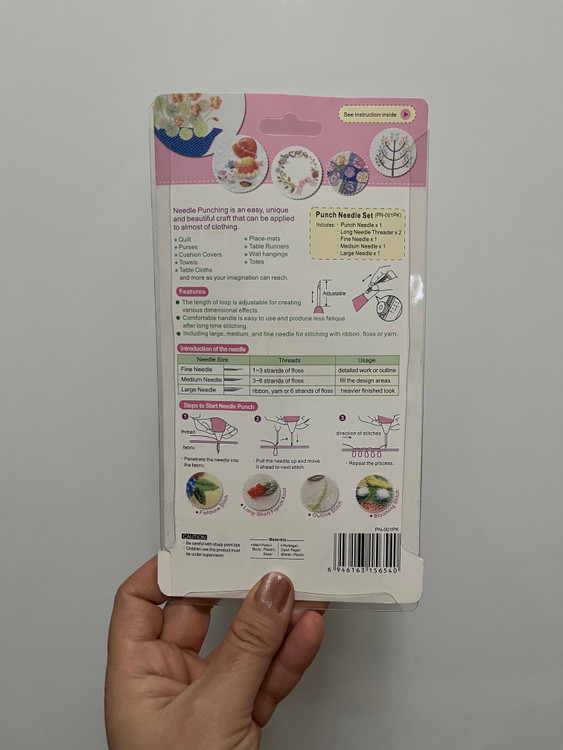 نیدل پانچ سه سوزنه مارک «مینا کارین» ترکیه بسیار باکیفیت علاوه بر سه سوزن در سه سایز مختلف، دارای دو عدد سوزن نخ کن و یک دفترچه راهنمای استفاده از محصول است، که در آن علاوه بر توضیح درباره انواع سوزنها و تعویض آنها، در مورد نخ، پارچه و بطور کلی انواع متریال قابل استفاده و نحوه دوخت با سوزنها، و انواع روشهای دوخت هم توضیح داده است.